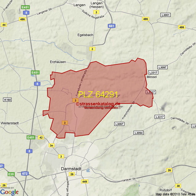 Straßenverzeichnis zur Postleitzahl 64291
