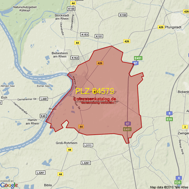 Postleitzahlgebiet (PLZ) 64579