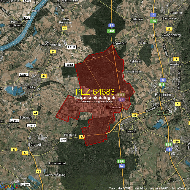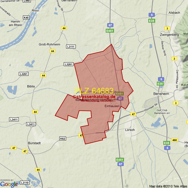 Straßenverzeichnis zur Postleitzahl 64683