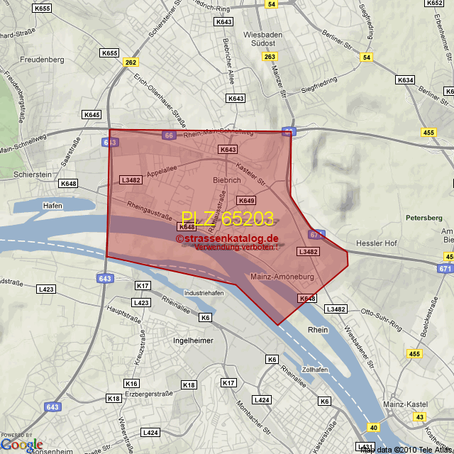 Ortsteile von Wiesbaden mit der PLZ 65203