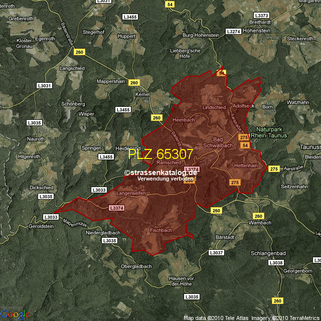 Ortsteile von Bad Schwalbach mit der PLZ 65307