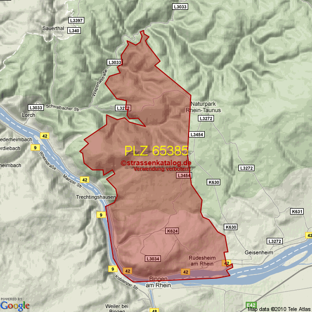 Ortsteile von Rüdesheim am Rhein mit der PLZ 65385