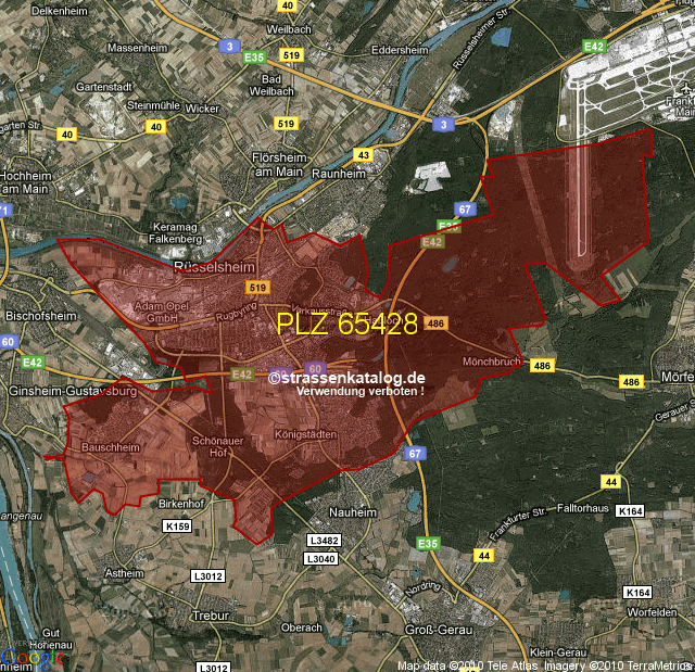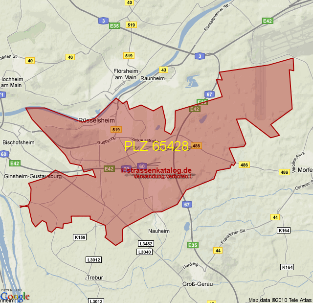 Ortsteile von Rüsselsheim mit der PLZ 65428