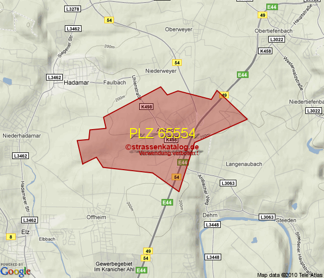 Postleitzahlgebiet (PLZ) 65554
