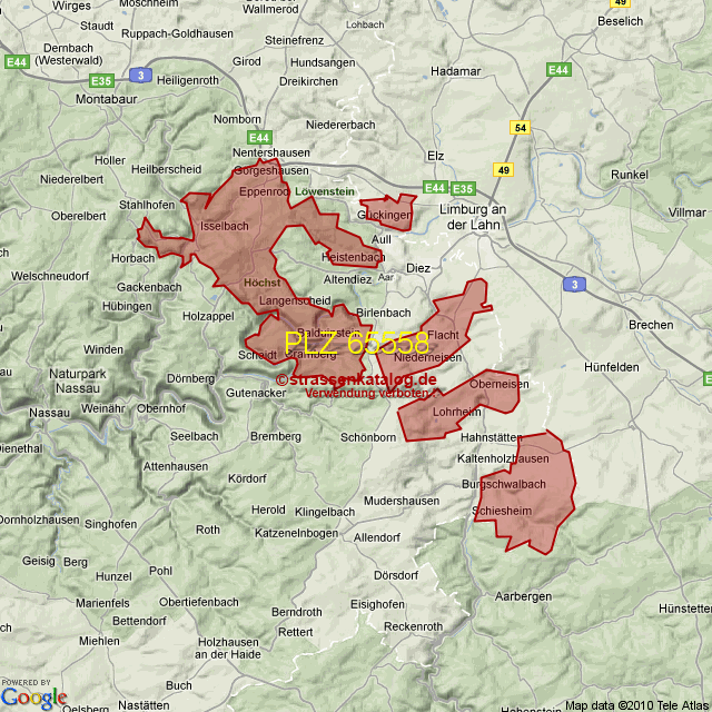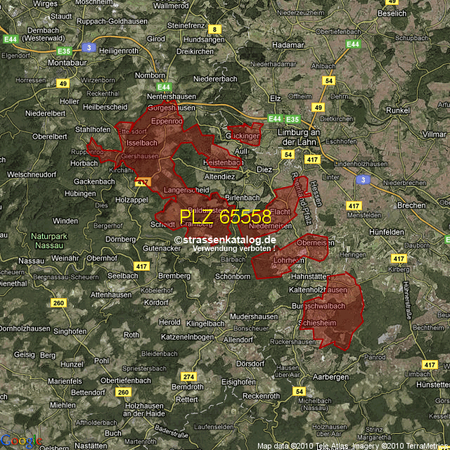 Postleitzahlgebiet (PLZ) 65558