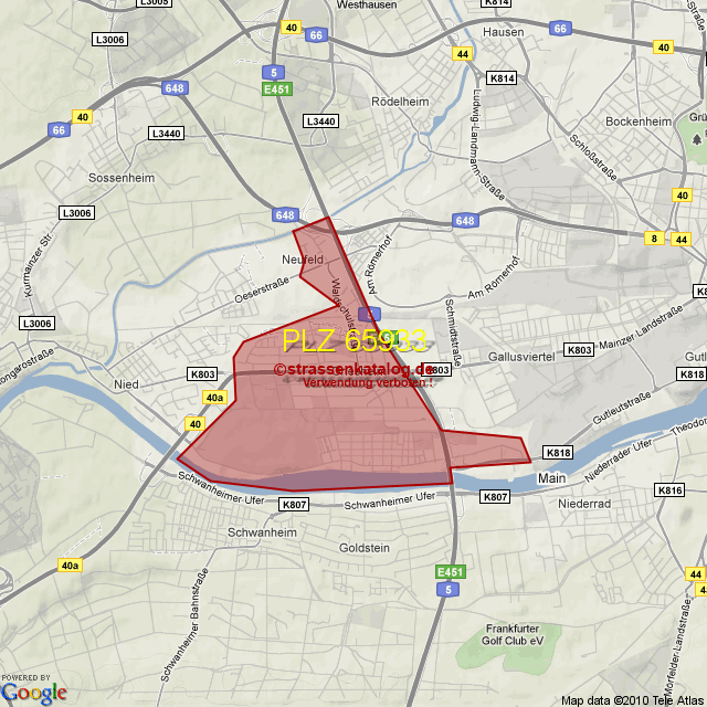 Ortsteile von Frankfurt mit der PLZ 65933