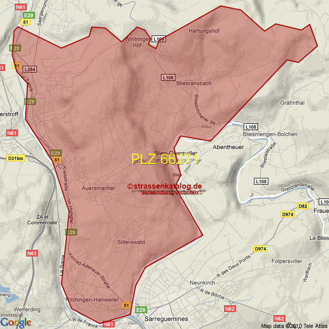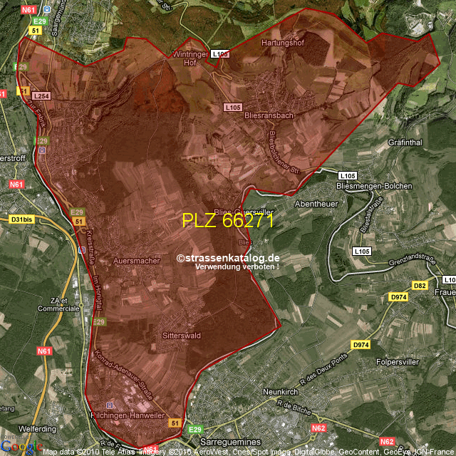 Ortsteile von Kleinblittersdorf mit der PLZ 66271