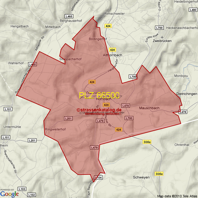 Straßenverzeichnis zur Postleitzahl 66500