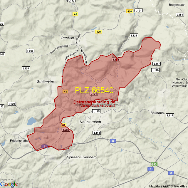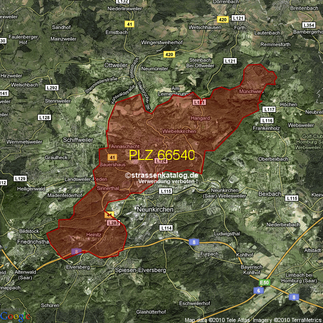 Ortsteile von Neunkirchen mit der PLZ 66540