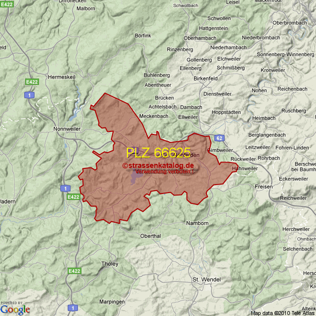 Postleitzahlgebiet (PLZ) 66625