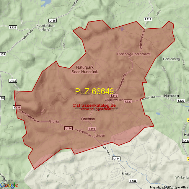Straßenverzeichnis zur Postleitzahl 66649