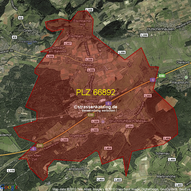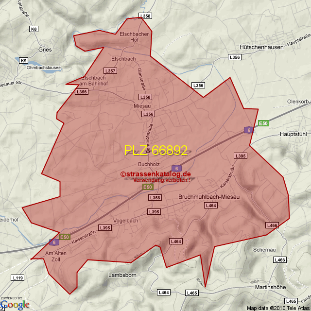 Straßenverzeichnis zur Postleitzahl 66892