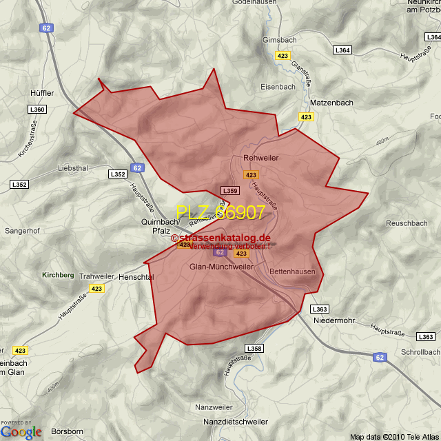 Straßenverzeichnis zur Postleitzahl 66907