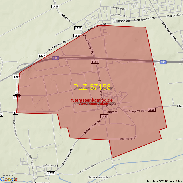 Straßenverzeichnis zur Postleitzahl 67158