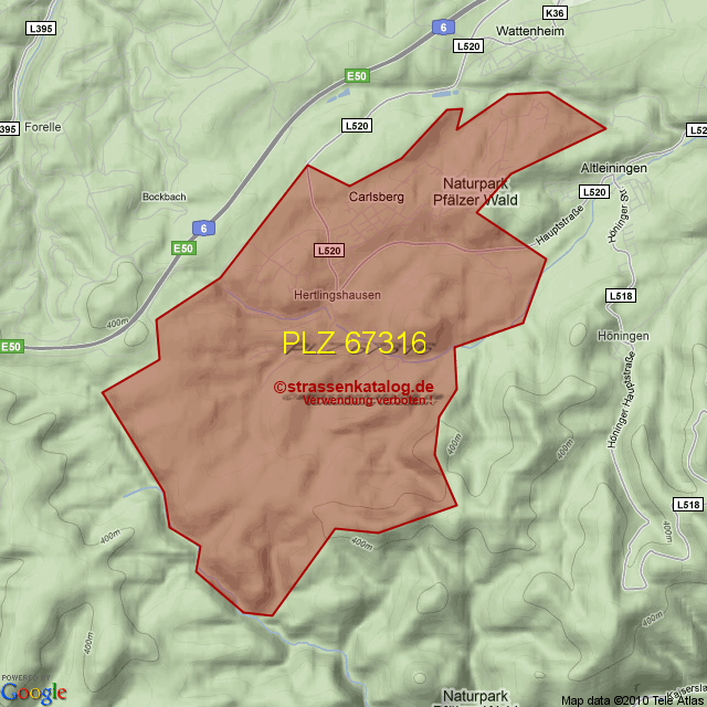 Straßenverzeichnis zur Postleitzahl 67316