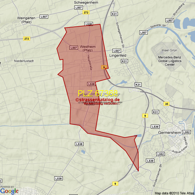 Straßenverzeichnis zur Postleitzahl 67368