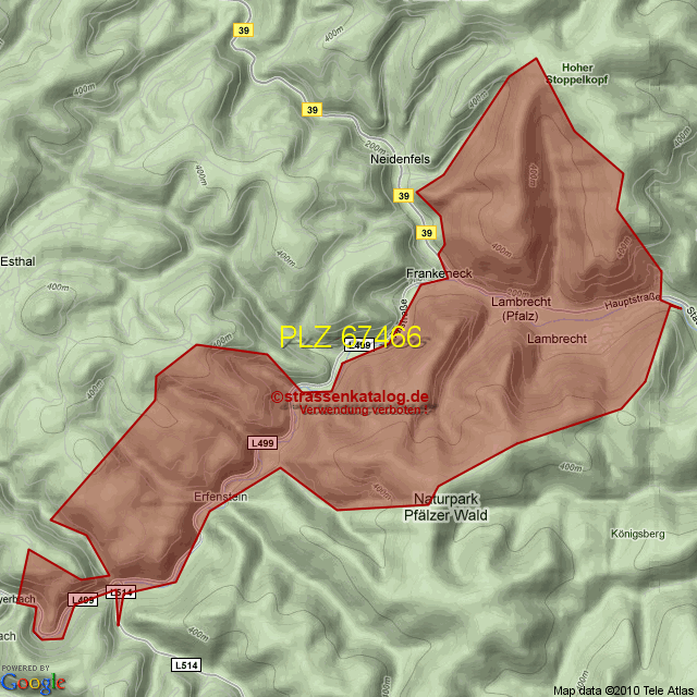 Straßenverzeichnis zur Postleitzahl 67466