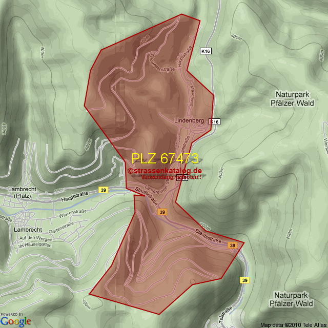 Straßenverzeichnis zur Postleitzahl 67473