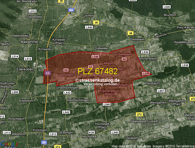Straßenverzeichnis zur Postleitzahl 67482