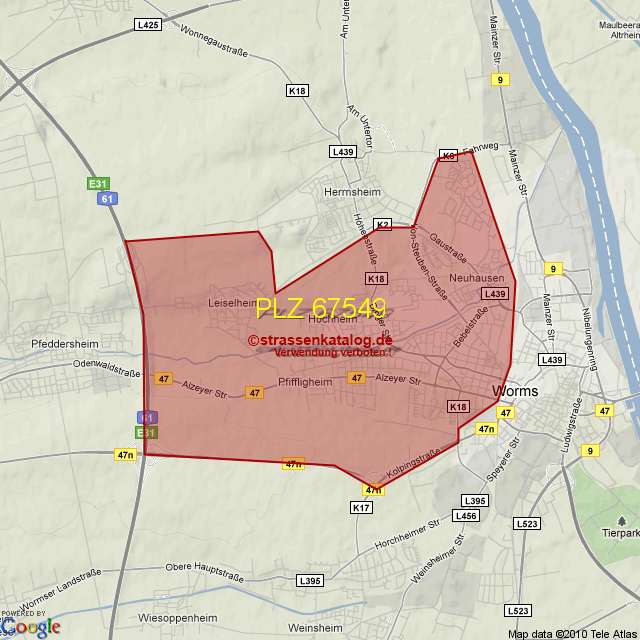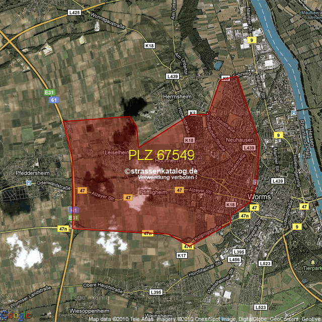 Ortsteile von Worms mit der PLZ 67549
