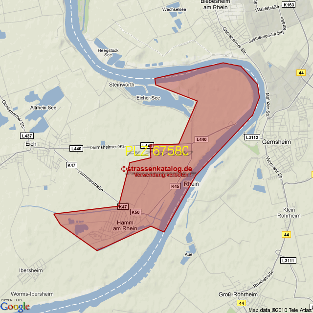 Straßenverzeichnis zur Postleitzahl 67580