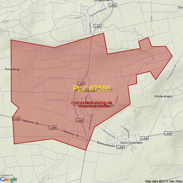 Straßenverzeichnis zur Postleitzahl 67586