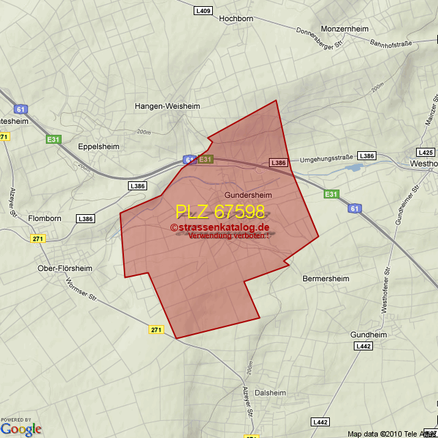 Postleitzahlgebiet (PLZ) 67598