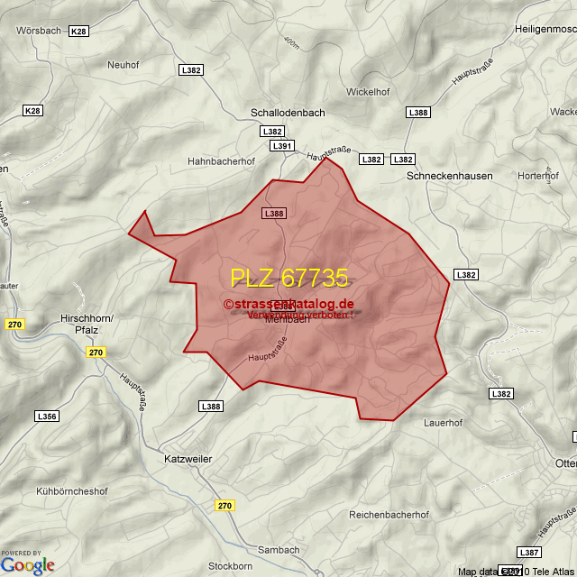Straßenverzeichnis zur Postleitzahl 67735