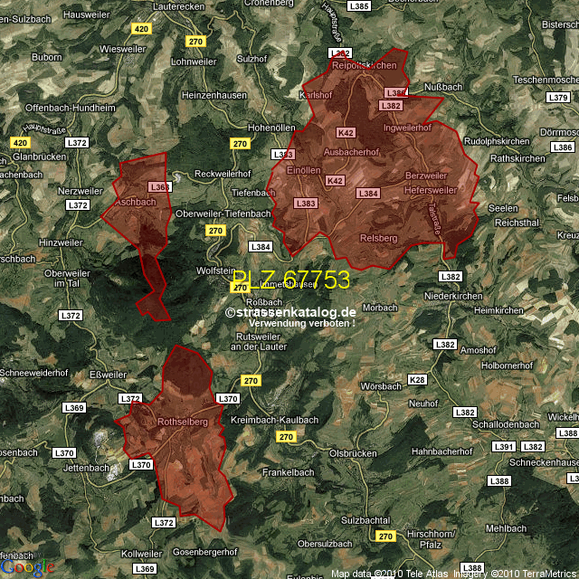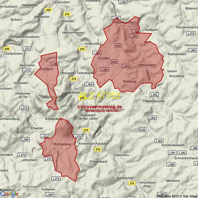 Straßenverzeichnis zur Postleitzahl 67753