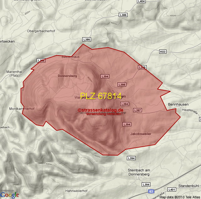 Straßenverzeichnis zur Postleitzahl 67814