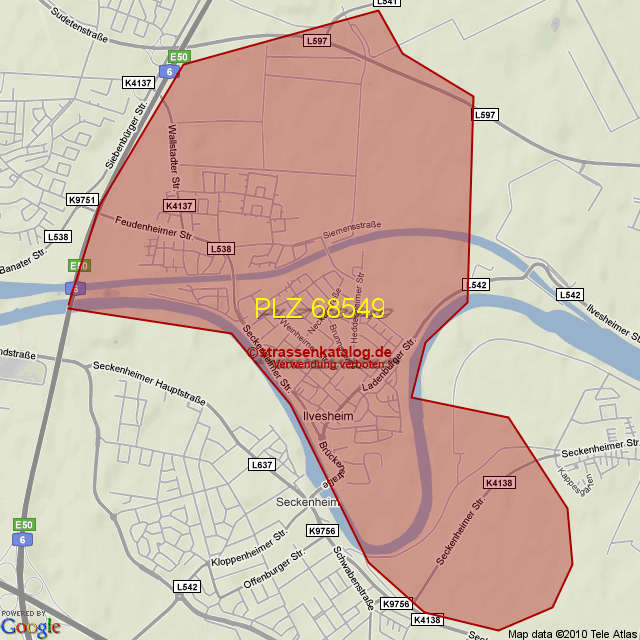 Postleitzahlgebiet (PLZ) 68549