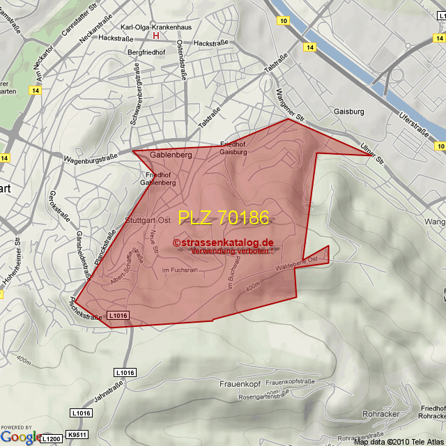 Straßenverzeichnis zur Postleitzahl 70186