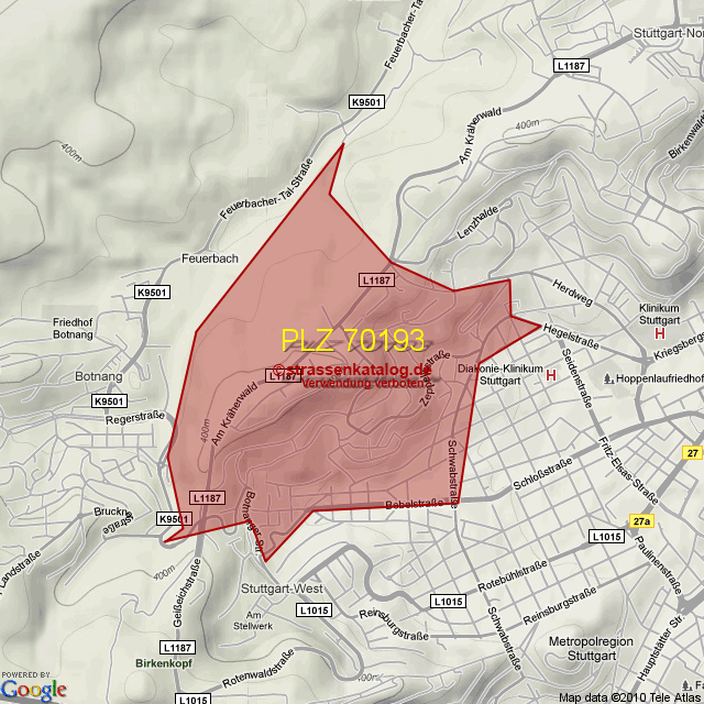 Straßenverzeichnis zur Postleitzahl 70193