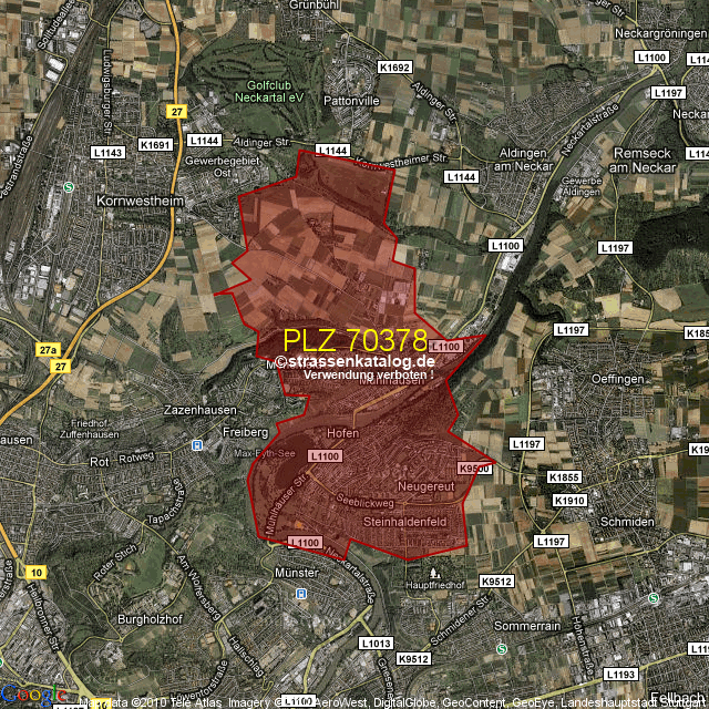 Postleitzahlgebiet (PLZ) 70378