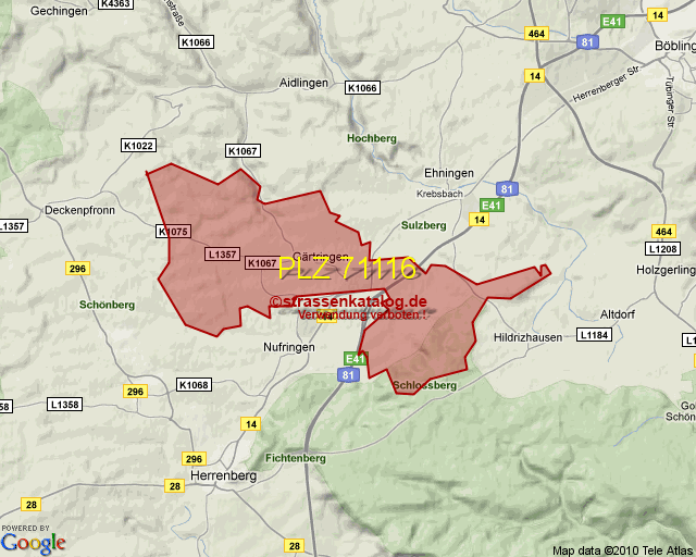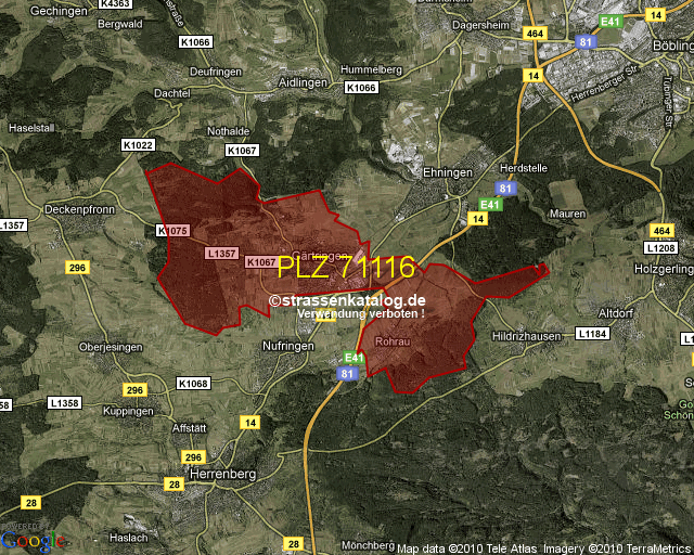 Postleitzahlgebiet (PLZ) 71116