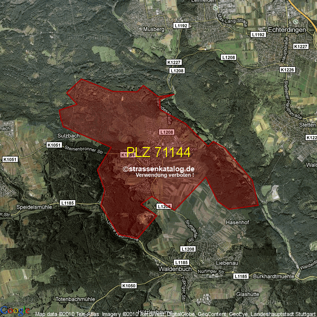 Postleitzahlgebiet (PLZ) 71144