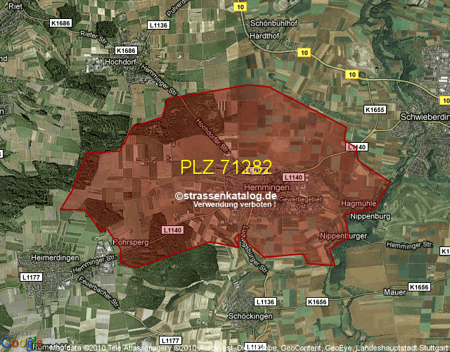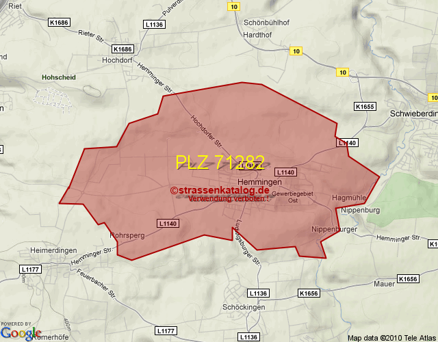Straßenverzeichnis zur Postleitzahl 71282
