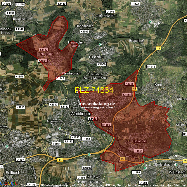 Ortsteile von Waiblingen mit der PLZ 71334