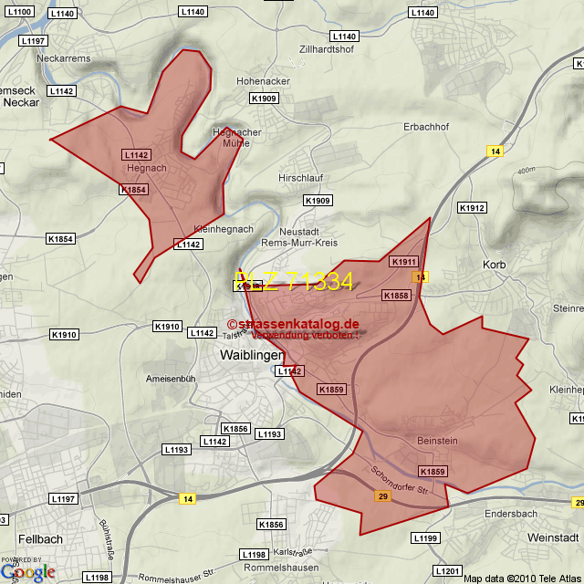 Postleitzahlgebiet (PLZ) 71334