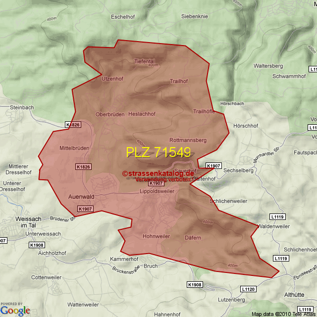 Straßenverzeichnis zur Postleitzahl 71549