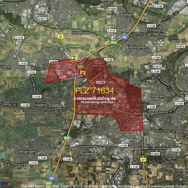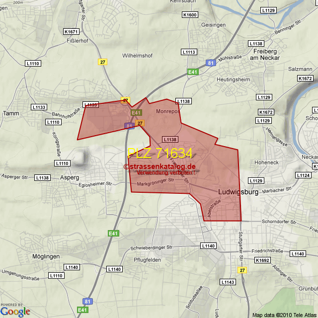 Ortsteile von Ludwigsburg mit der PLZ 71634