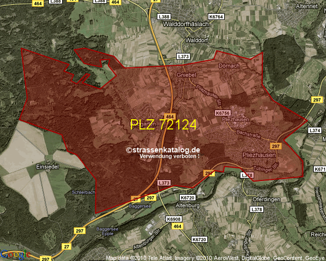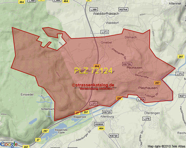 Straßenverzeichnis zur Postleitzahl 72124