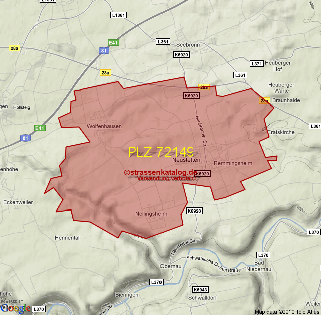 Straßenverzeichnis zur Postleitzahl 72149