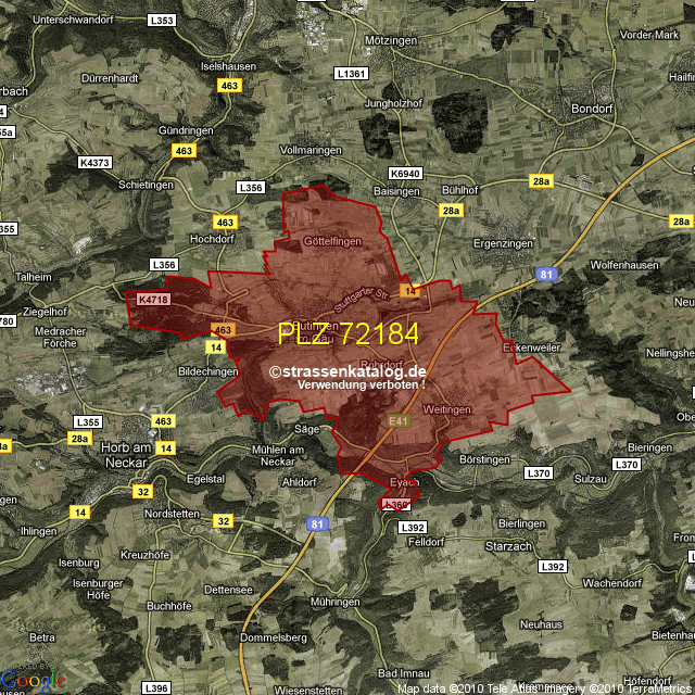 Postleitzahlgebiet (PLZ) 72184