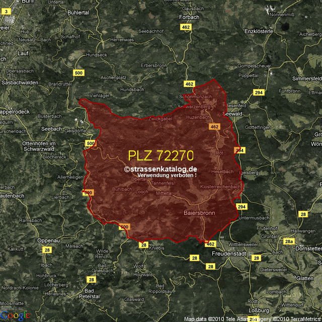 Ortsteile von Baiersbronn mit der PLZ 72270