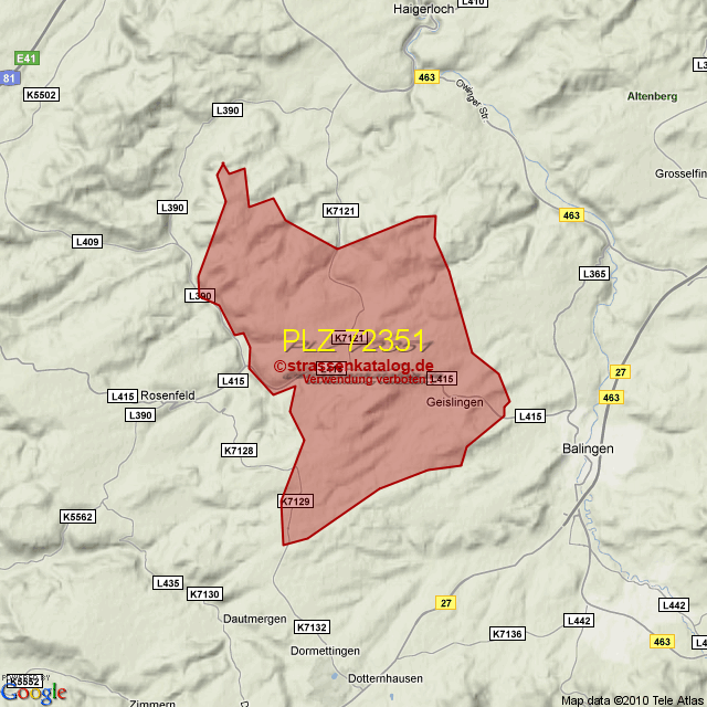 Postleitzahlgebiet (PLZ) 72351
