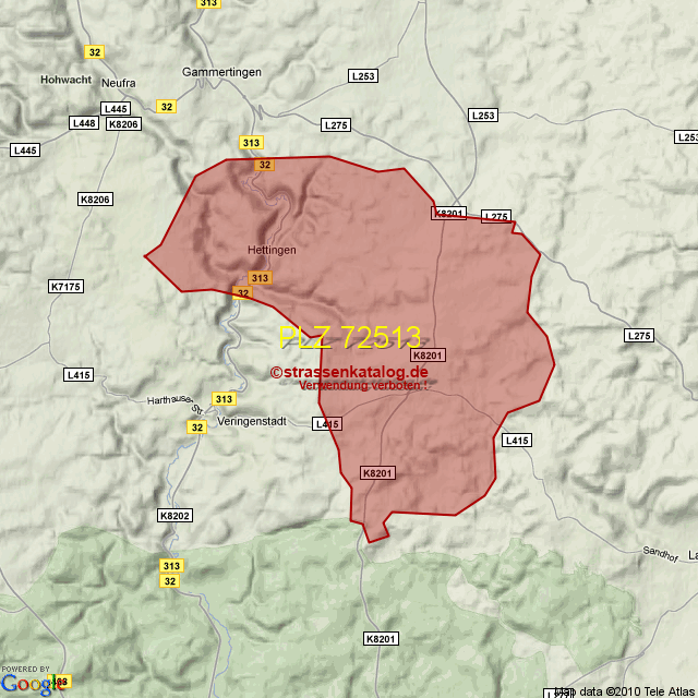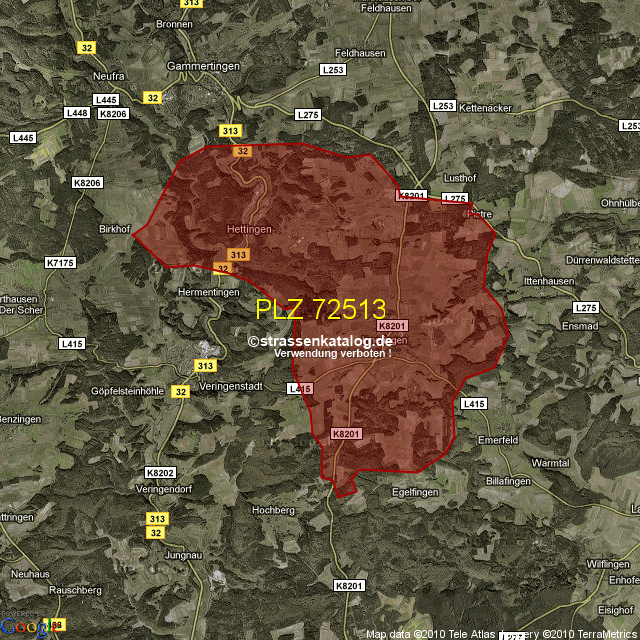 Postleitzahlgebiet (PLZ) 72513