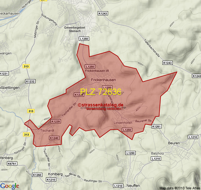 Straßenverzeichnis zur Postleitzahl 72636