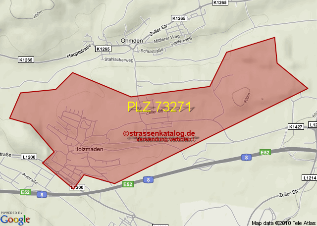 Straßenverzeichnis zur Postleitzahl 73271