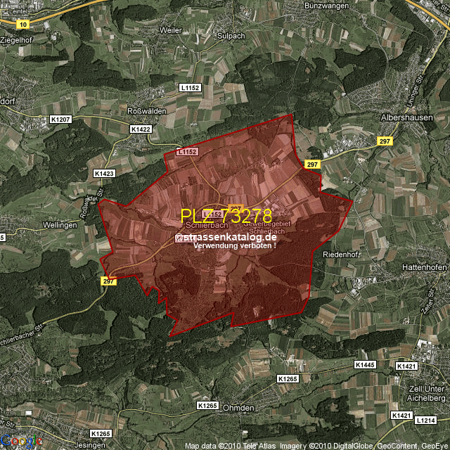 Straßenverzeichnis zur Postleitzahl 73278